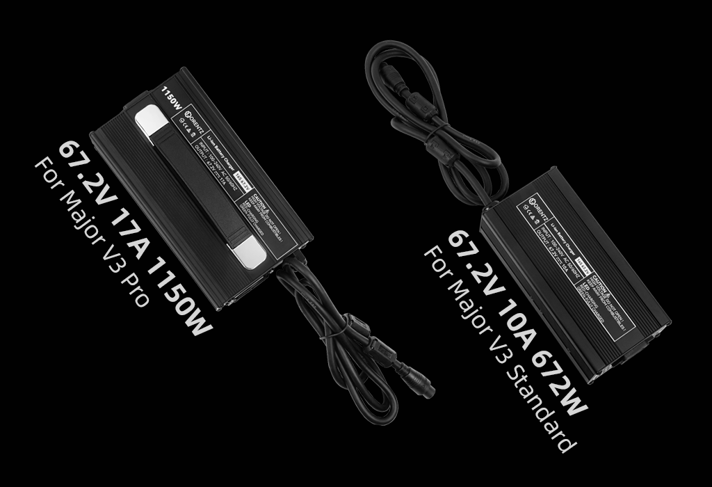 Some companies sell a fast-charger as an extra accessory. For Lorentz, we like to make the extra standard! The Major V3 Pro comes with a 17A charger, blasting at up to 1150W to charge 0-full in 2.4 hours. The V3 Standard ships with a 10A charger for full charging in under 2 hours!